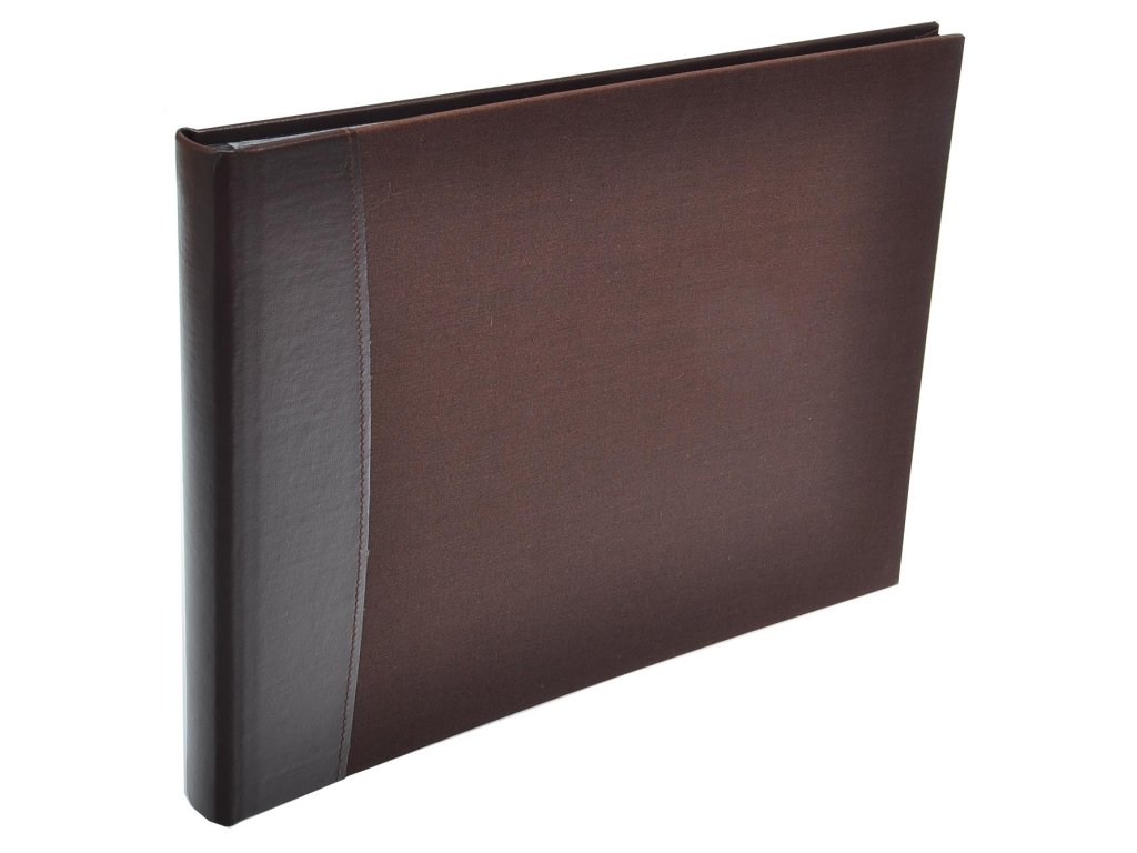 Fotoalbum klasického vzhledu, podélného tvaru. Přední desky je potažena textilním potahem hnědé barvy a zadní desky s hřbetem mají potah z koženky. K vlepování fotek slouží 40 černých stran /20listů/ mezi kterými je jemný papír pro lepší ochranu fotografií. Detailní informace o rozměrech foto alba naleznete ve schématu mezi fotografiemi. Jak nejlépe lepit fotky do klasického alba si přečtěte v článcích Růžky nebo lepidlo a Klasické fotoalbum.