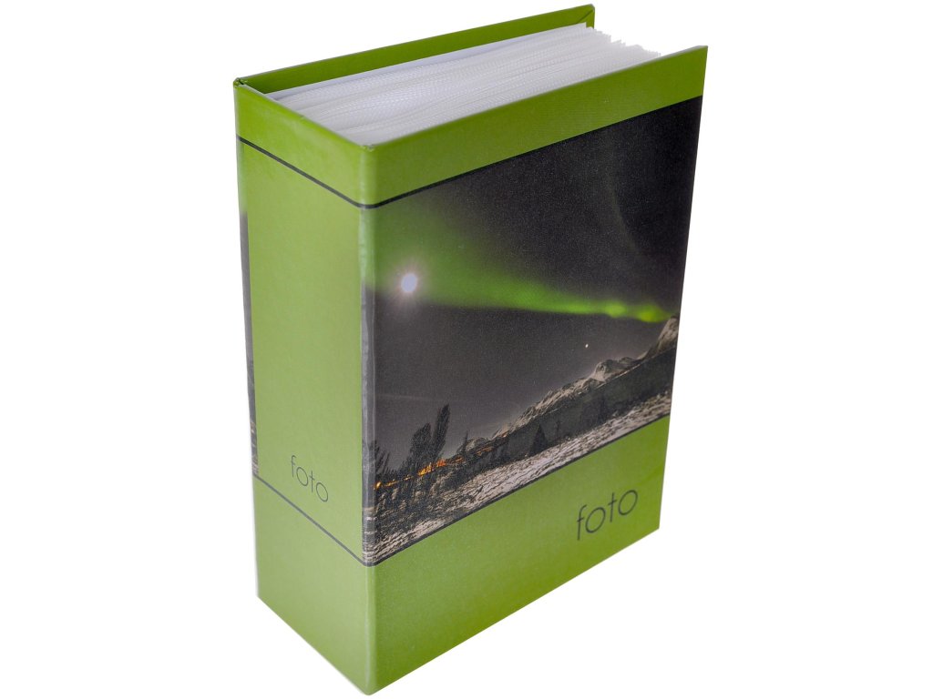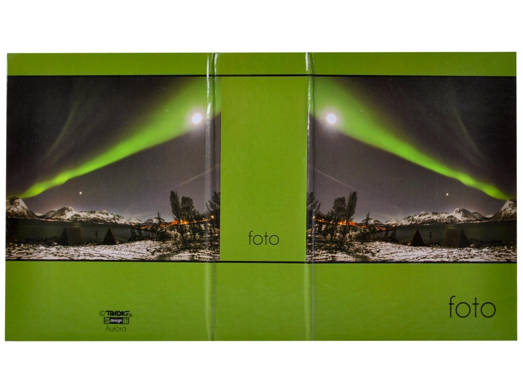 Fotoalbum sa zábery polárna žiara na doskách na 100 fotografií rozmeru 10x15. Hodí sa zvlášť pre fotky z vašich potuliek po severských pláňach. Systém priehľadných vreciek na zasunutie fotiek. Laminované desky.Originální dizajn Tradag.
