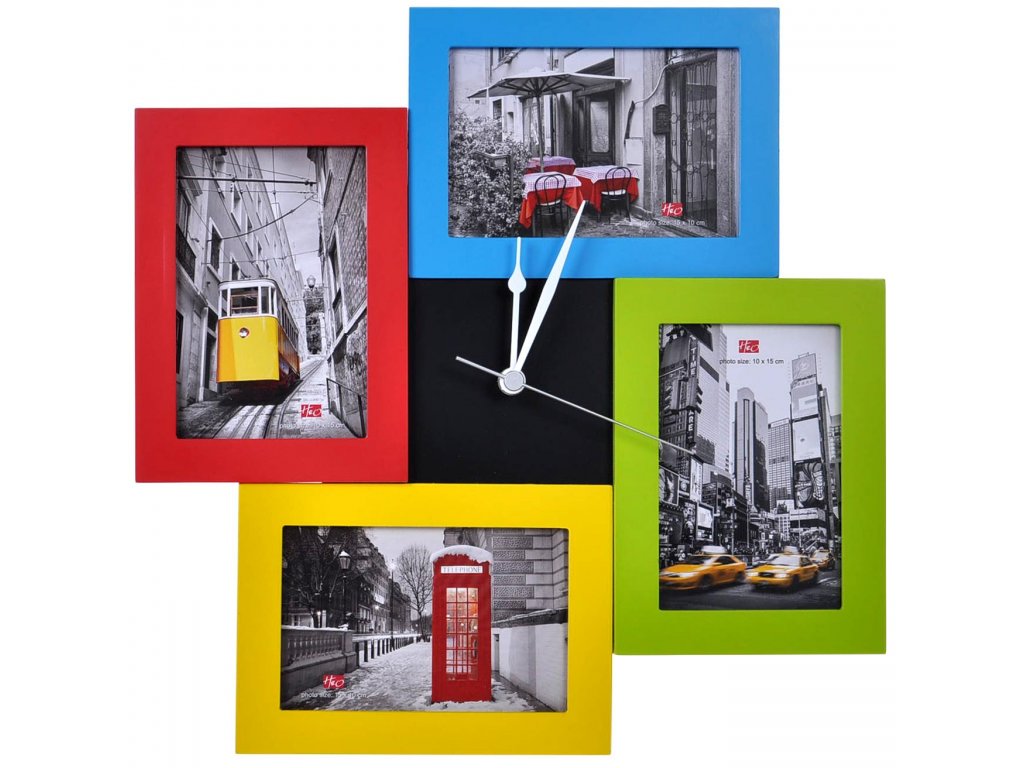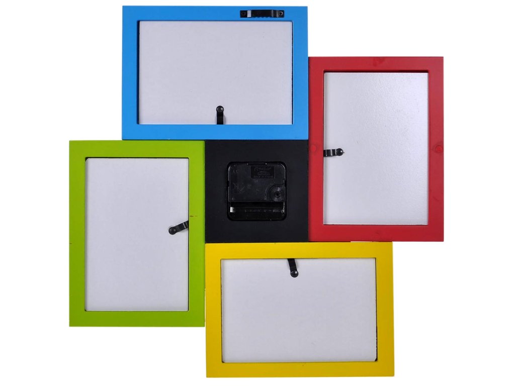 Veselé hodiny na fotky do každej rodiny. Hodiny v žiarivých farbách do ktorých si umiestnite štyri fotografie 10x15. Deti, priateľky alebo obľúbené zvieratko, je to len na vašej fantázii. Do hodín sa vkladá jedna tužková batéria AA, ktorá nie je súčasťou balenia.