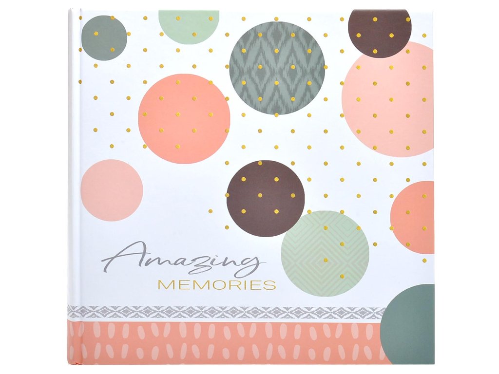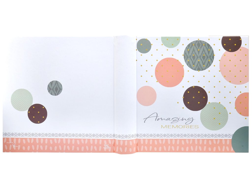 Klasický fotoalbum s farebnými kolieskami na doskách pre fotky s vašimi spomienkami. Fotoalbum obsahuje 100 strán (50listov) na nalepovanie fotografií na šité väzbe. Medzi listami je jemný papier, pre lepšiu ochranu fotografií.