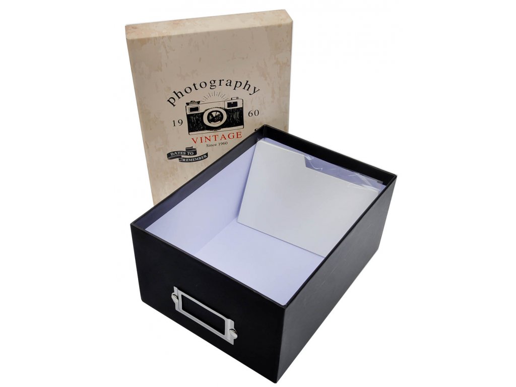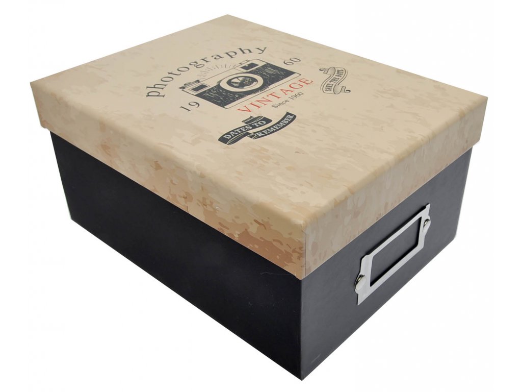 Čierno-beový Fotobox Camera na uloženie až 700ks fotiek 10x15. Dať si do nej môžete samozrejme čokoľvek iné a keď skombinujete ďalšie krásne škatuľky z nášho sortimentu máte krásny bytový doplnok. Krabička má laminovaný poťah, ktorý sa dobre udržiava.