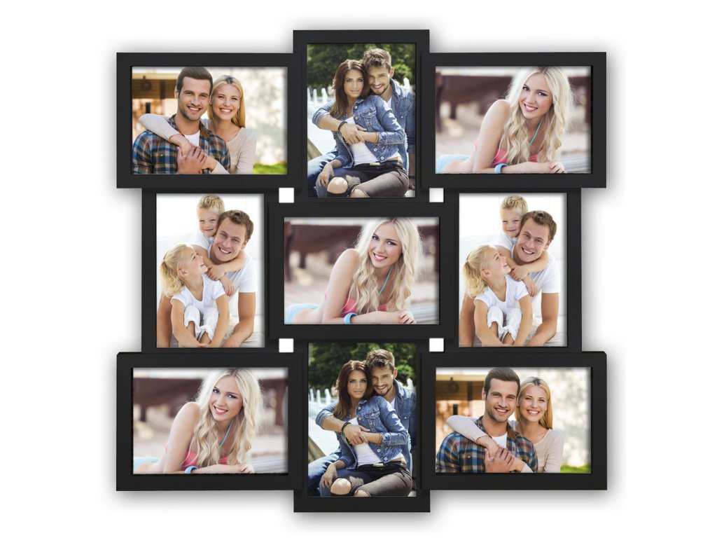 Rám galérie Santander v čiernej farbe pre tie najlepšie fotky, ktoré chcete vidieť pohromade. Vyberte najlepšie zábery z dovolenky alebo rodinnej slávnosti a vytvorte tematický súbor, ktorý túto udalosť vždy pripomenie. Kapacita je 9 fotiek 13x18 centimetra a vonkajší rozmer rámu je 52x53 centimetrov.