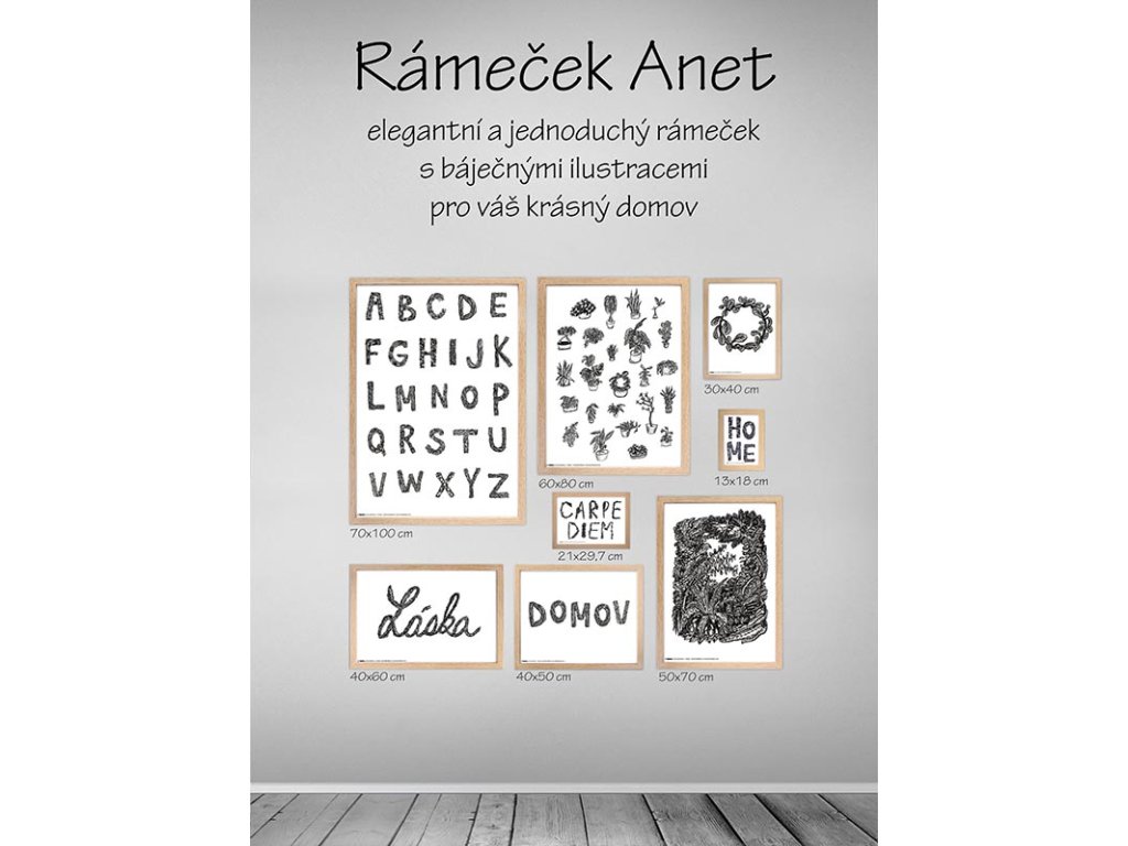 Rámček Anet vo farbe prírodného dreva pre fotku, obrázok alebo grafiku veľkosti 30x40 centimetra. Namiesto bežného papiera je v rámčeku ilustrácie, ktorú si môžete vylepšiť váš domov. Lišta rámčeka je vyrobená z MDF a miesto skla má akrylátovú fóliu. Preto sú tieto rámy ľahké, bezpečné a vhodné do priestorov, kde hrozí jeho rozbitie.