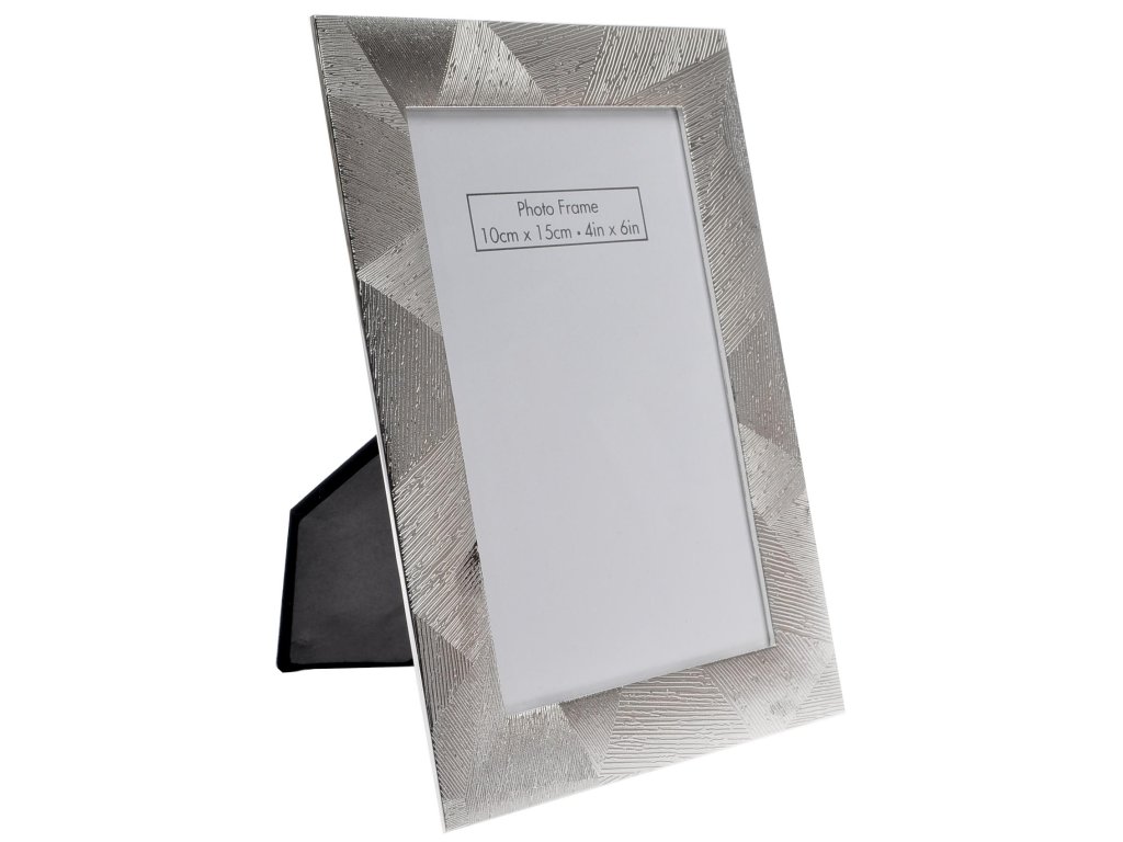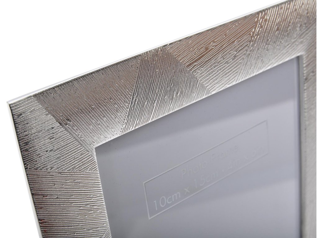 Luxusní rámeček Dickens z bílého kovu se zajímavou strukturou. Tvoří fotkám bude slušet. Pro fotografii 10x15. Zadní strana je semišová a má stojánek pro postavení na rovnou plochu.