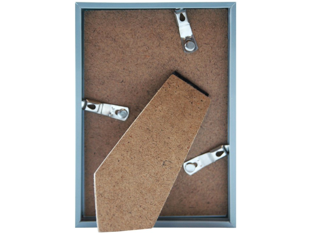 Jednoduchý jednofarebný rám z modrého plastu. Univerzálne a elegantné riešenie pre vaše fotografie, plagáty, vlastné diela, najrôznejšie tlačoviny apod. Na zadnej strane má stojan pre postavenie na rovnú plochu. Možné zavesiť aj na stenu.