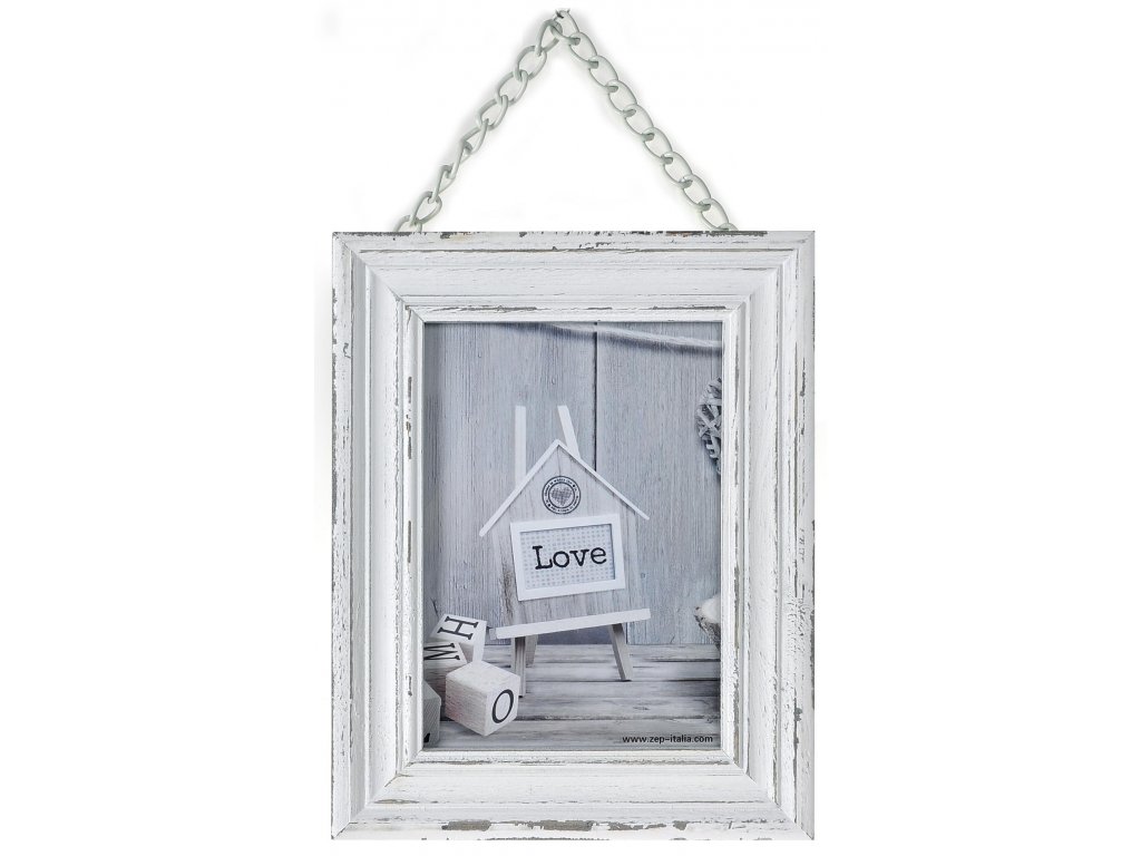 Rámček Rivoli v štýle retro pre fotografiu 13x18cm s výraznou patinou a bielym lakom. Zvláštnosťou je kovový retiazka na zavesenie, ktorý môžete a nemusíte použiť. Rámček tiež môžete postaviť na rovnú plochu.