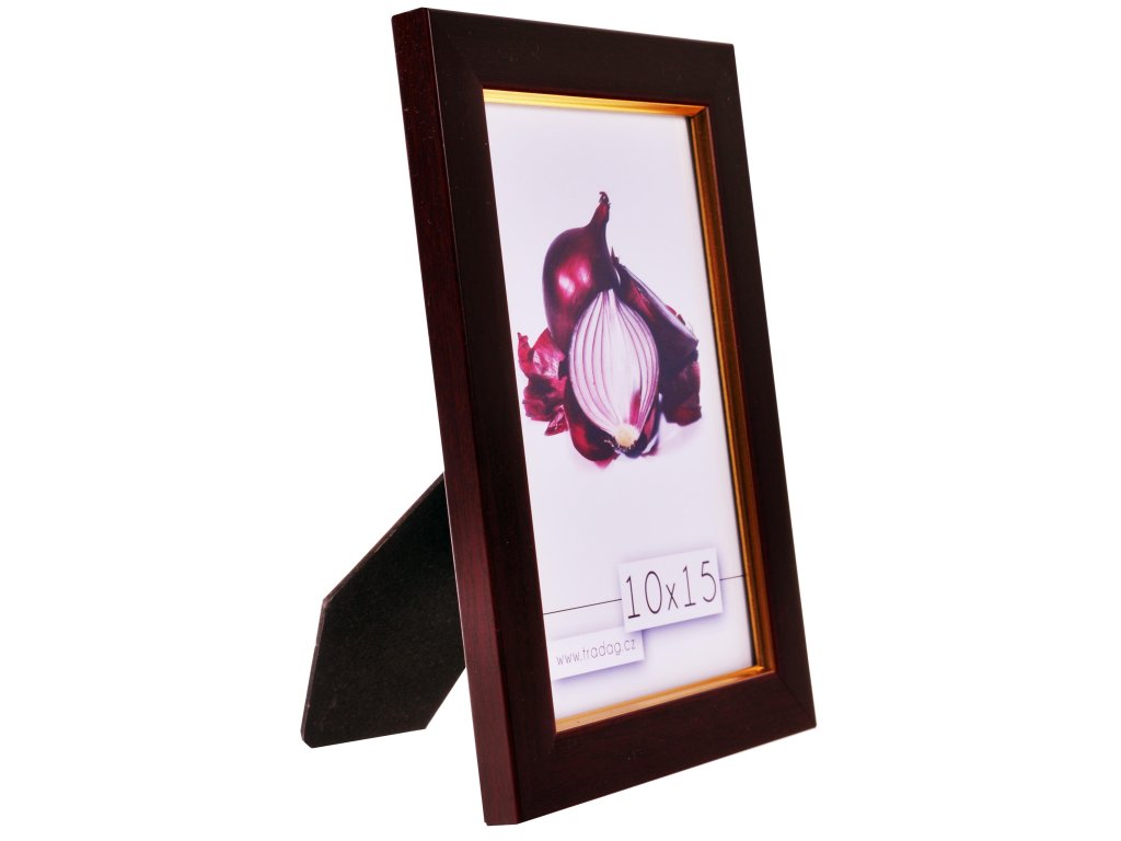 Rámček Sagunto je jednoduchý rámik klasického vzhľadu so zlatou linkou pre fotografiu 10x15. Na zadnej strane je stojan na postavenie na rovnú plochu.