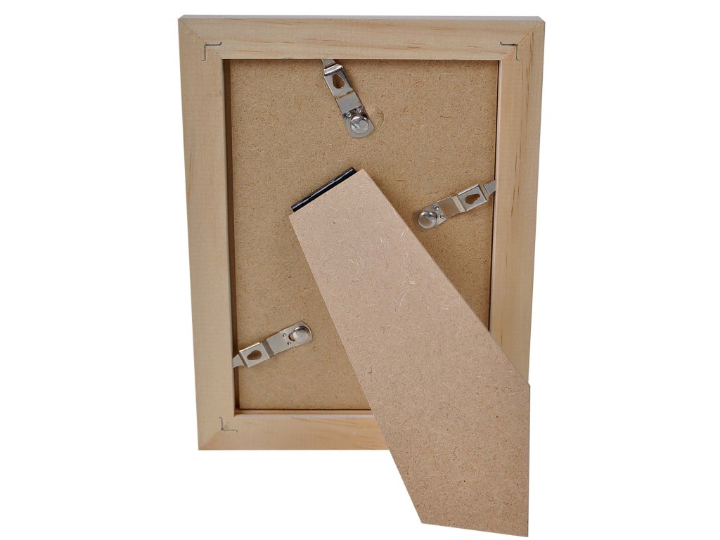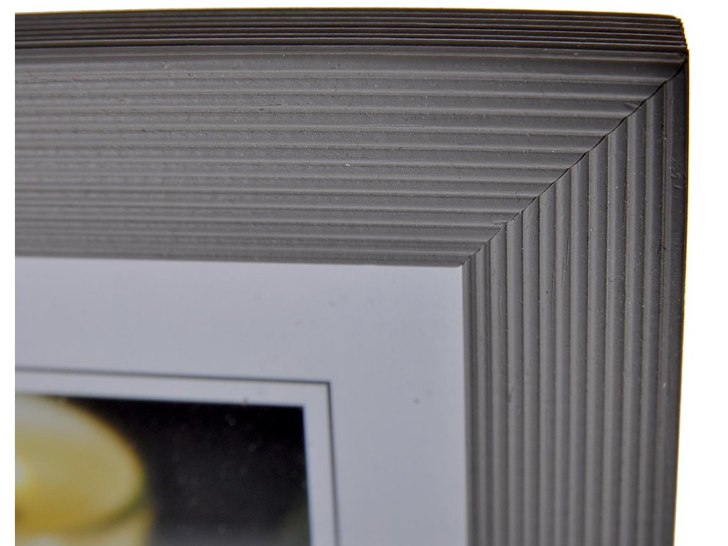 Drevený rámik vrúbok s šedým lakom pre fotografiu 10x15cm. Zadná strana je z MDF a má stojan na postavenie na rovnú plochu. Na stenu rámček zavesíte za otvor v spone.