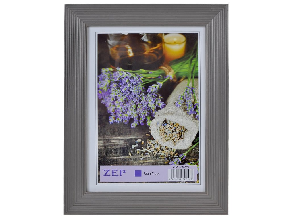 Drevený rámik vrúbok s šedým lakom pre fotografiu 13x18cm. Zadná strana je z MDF a má stojan na postavenie na rovnú plochu. Na stenu rámček zavesíte za otvor v spone.