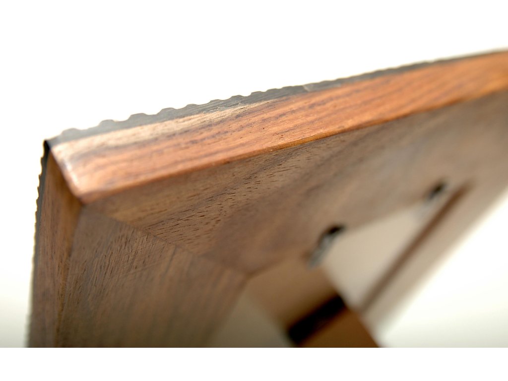 Veľmi neobyčajný rám z tropického dreva sa svietnikom od talianskej firmy Mascagni. Zaujímavý a exotikou dýchajúce vzhľad dodáva rámu vzácne drevo, ktorým je obložený. Pravdepodobne sa jedná o eben alebo inú vzácnu drevinu so štruktúrou pripomínajúce zebru. Jedná sa o ručnú prácu, preto je každý kúsok zvlášť zabrúsený a málinko odlišný. Ak teda hľadáte originálny rámik, ktorý je hodnotným dizajnovým doplnkom, neváhajte a kupujte. Máme už posledná sadu skladom.