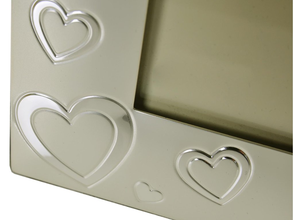 Luxusný rámik so srdiečkami potiahnutý slabučkou vrstvou striebra. Povrch má matný a sfarbený ľahko do žlta, táto farba býva nazývaná tiež ako "champagne". Zadná strana je potiahnutá zamatom a má stojan pre postavenie rámčeku na rovnú plochu.