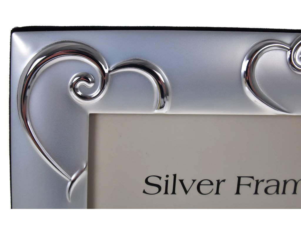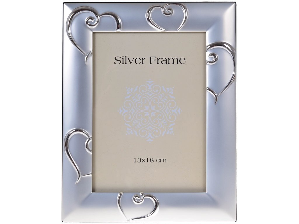 Luxusný rámik z kovu striebornej farby. V matnom povrchu ráme je vzor so srdiečkami. Opravdu moc pekný kůsok pre vaši fotku 13x18 cm.