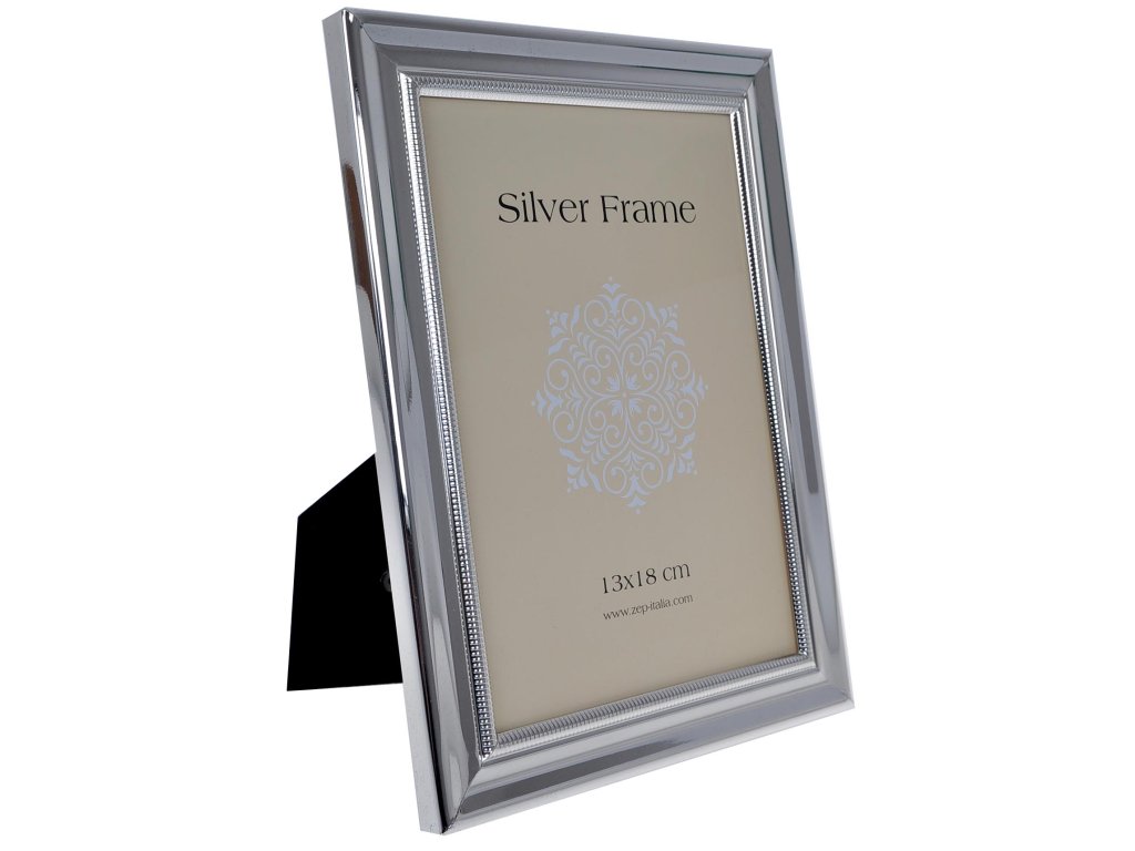 Luxusný rámček s vrúbkami potiahnutý slabučkou vrstvou striebra s vysokým leskom. Určený pre fotku 13x18 centimetrov. Zadná strana je potiahnutá zamatom a má stojan pre postavenie rámčeku na rovnú plochu. Ak chcete pre vaše fotky niečo neobyčajné a luxusného kúpte si tento rámik.