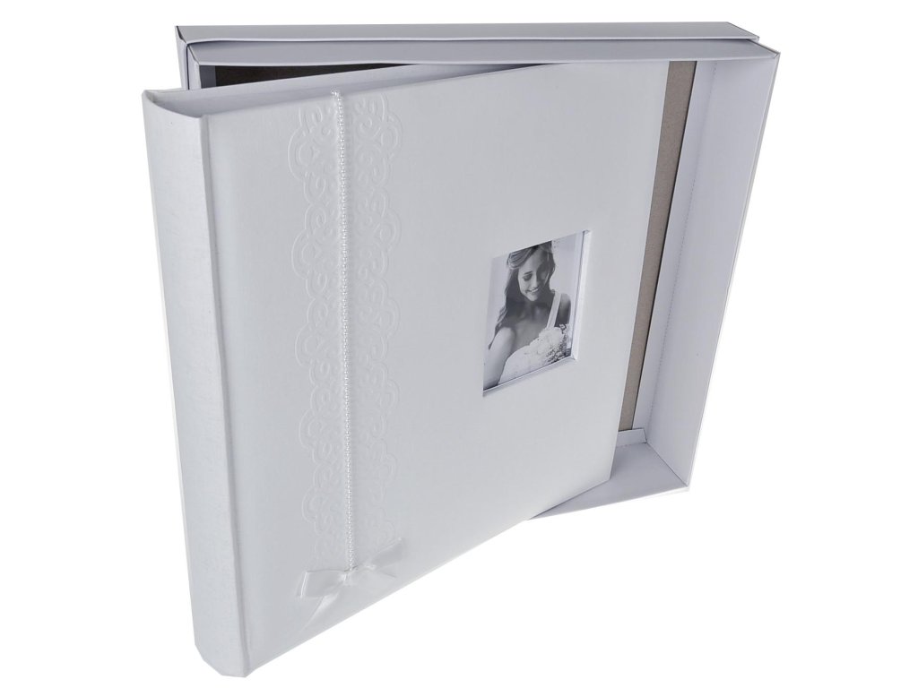 Svadobný foto album Luna pre fotografie z vášho svadobného dňa určenej na vlepovanie fotografií. Na prednej doske je okienko pre vloženie vlastné fotografie, šnúra s perličkami a ozdobná razba. Album obsahuje 100 strán medzi ktorými je jemný papier pre lepšiu ochranu fotiek. Potreby pre lepenie fotiek nájdete v kategórii príslušenstva